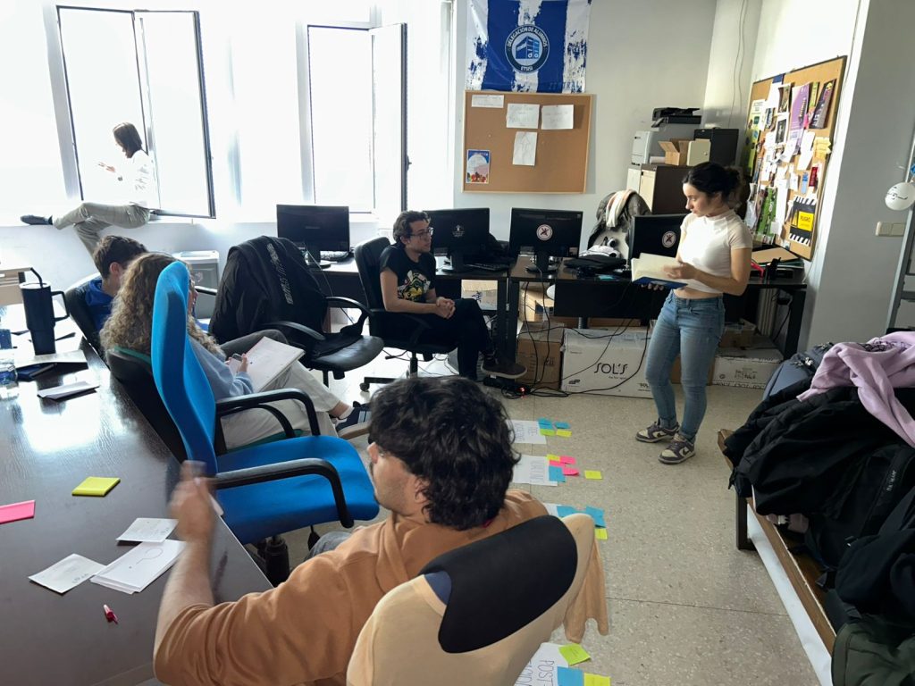 Tenemos la segunda reunión de equipo. Aquí por primera vez están presentes los “pollitos”. Esos estudiantes que han decidido interesarse por Delegación y ver que se cuece aquí dentro (además de aportar una nueva visión a los proyectos que tratamos en la reunión)